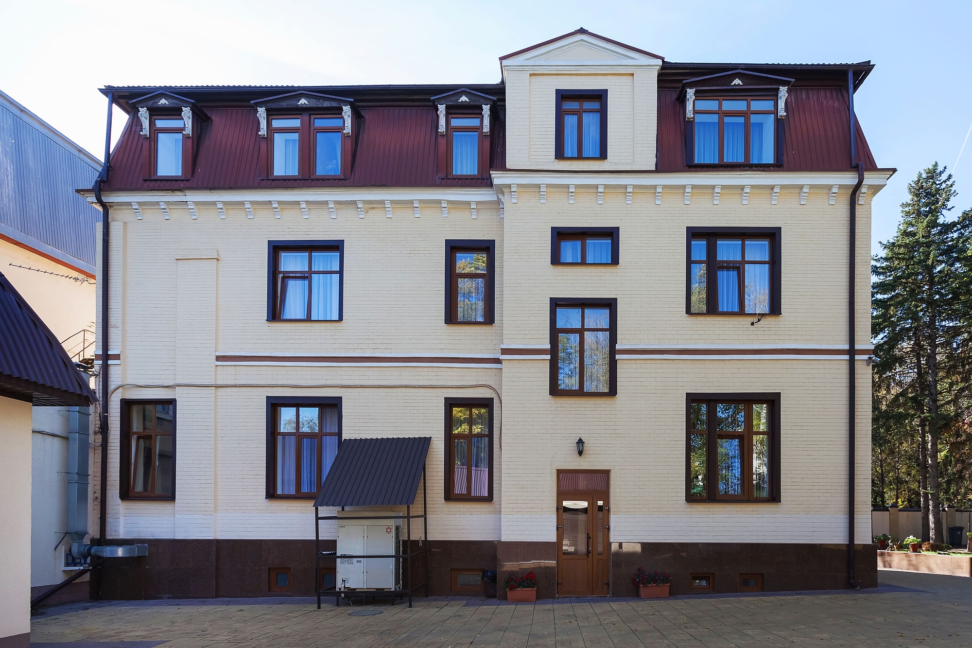 Трехэтажное здание, соединено крытым переходом с лечебным корпусом
