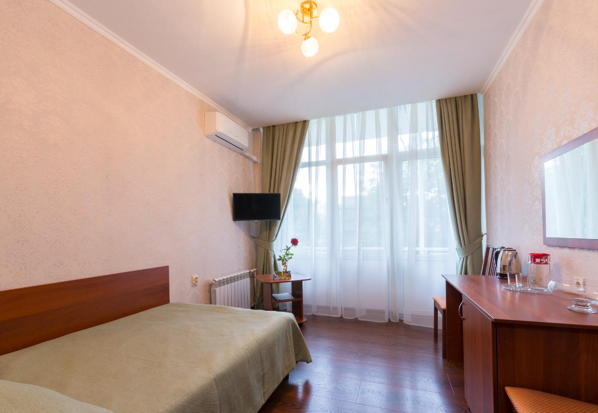 Одноместный однокомнатный номер 1 категории является улучшенным и обновленным, находится в 1 корпусе санатория, идеально подходит для комфортного отдыха стандартного уровня. Площадь номера составляет 12 м² и включает всё необходимое для вашего удобства. В номере есть удобная основная кровать, кондиционер и отопление, балкон, утюг и гладильная доска (по требованию), фен, раскладушка для дополнительного места, на первом этаже в холле доступен бесплатный Wi-Fi. Этот улучшенный номер сочетает уютный интерьер с функциональностью, создавая комфортную обстановку для проживания. Стоимость проживания зависит от выбранной программы лечения.